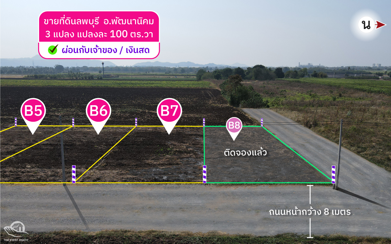 แปลง B8 ** แปลงมุม ** :: ซื้อเงินสด 250,000 บาท (2,500 บาท / ตารางวา)