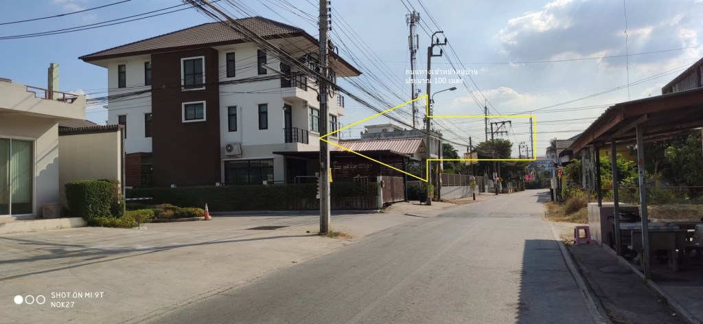 ถนนหน้าบ้านกว้างขวาง สะดวกสบาย ต่อเติมหลังคาจอดรถ ปูกระเบื้องแล้ว สวยพร้อมอยู่