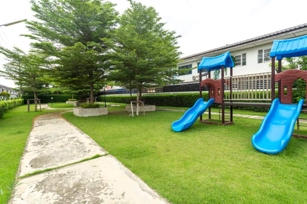 ส่วนกลางมีสวนร่มรื่นน่าอยู่ และมีฟิตเนสติดแอร์ ให้มาออกกำลังกายกันได้สบายๆ
