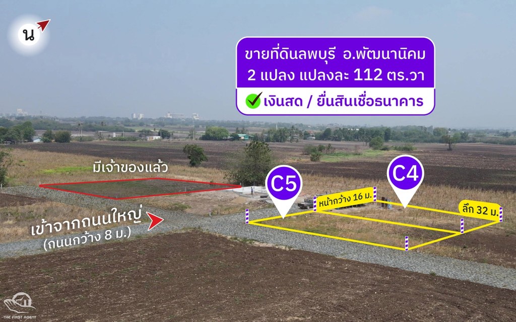 ขายที่ดินปลูกบ้าน โฉนด 112 ตรว น้ำ-ไฟถึง ต.ช่องสาริกา อ.พัฒนานิคม จ.ลพบุรี (C4,C5)