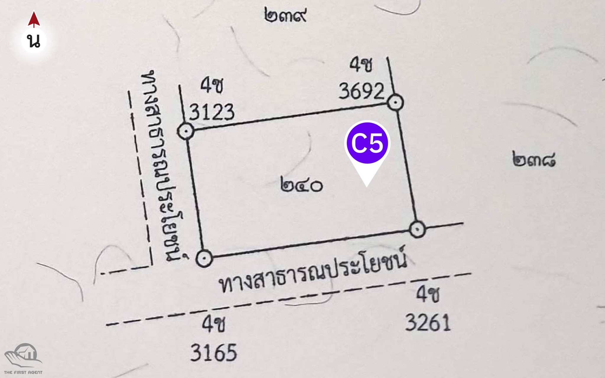 ** แปลง C5 ติดถนนสาธารณะ 2 ด้าน **