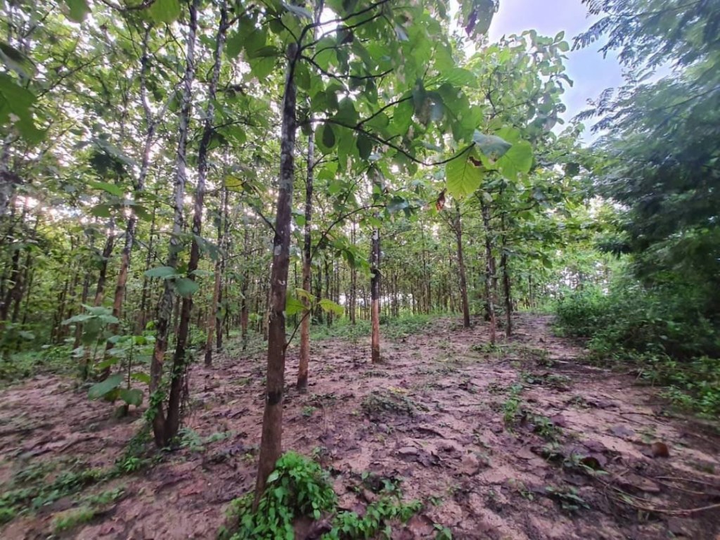 ขนาดที่ดิน 9-3-26 ไร่ หน้าที่ดินหันทิศตะวันออก ปลูกต้นสักเต็มพื้นที่ (ประมาณ 5000 ต้น)