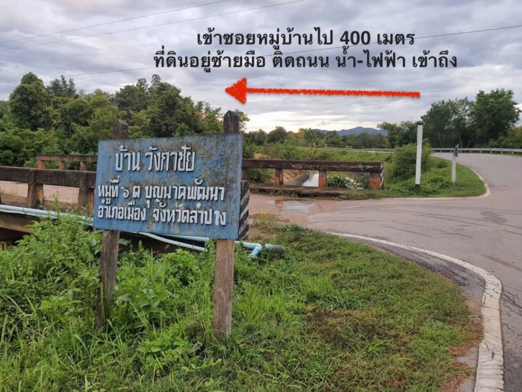 ขายที่ดินลำปาง หน้าที่ดินติดคอนกรีต หลังติดแหล่งน้ำ น้ำประปา ไฟฟ้า เข้าถึง