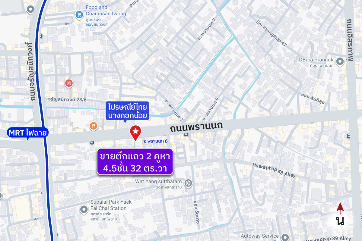 ขายตึกแถวพรานนก 2 คูหา ติดถนนพรานนก ใกล้ MRT ไฟฉาย