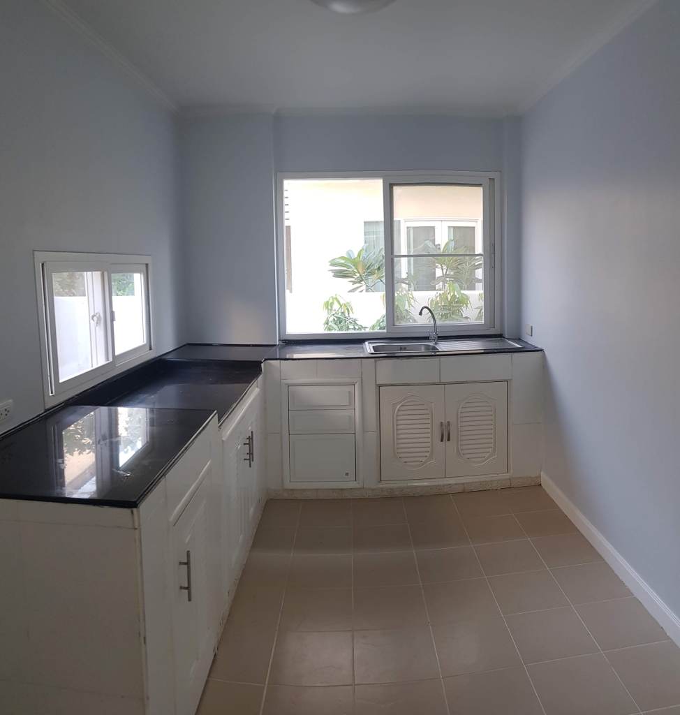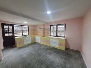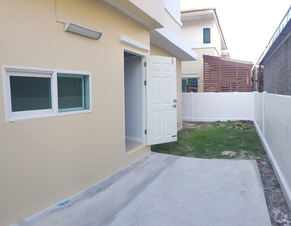 หลังบ้านมีประตูเปิดออกมาจากห้องครัว และเทปูนไว้แล้วเรียบร้อย เป็นส่วนซักล้าง