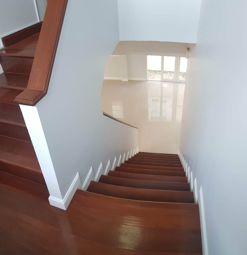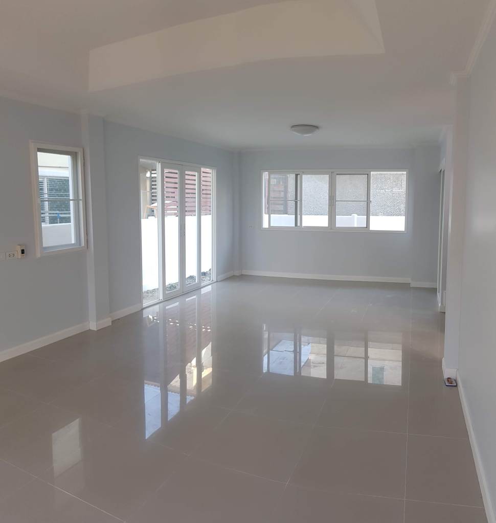 ชั้นล่างปูแกรนิโต้ ยาแนวกระเบื้องใหม่สะอาดสวยงาม โล่งมีแสงสว่างน่าอยู่