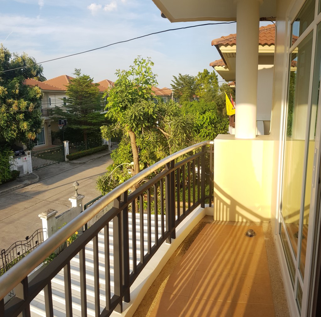 ระเบียงหันทิศใต้ ลมพัดสบายทั้งปีเข้าทางหน้าบ้าน ช่วงบ่ายมีแดดเฉียง ๆ เล็กน้อย