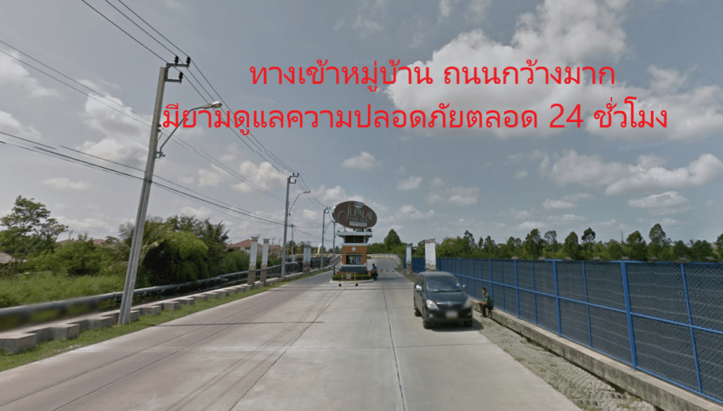หน้าหมู่บ้านมีป้อมยามคอยดูแลรักษาความปลอดภัยตลอด 24 ชั่วโมง